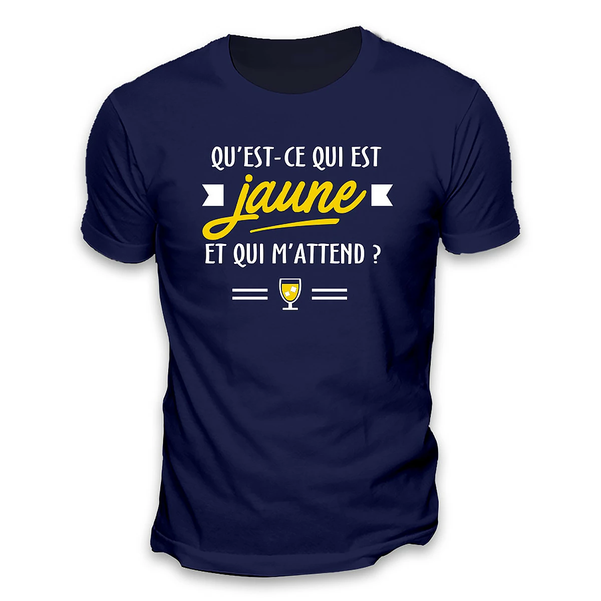 - T-shirt humoristique Qu’est-ce qui est jaune et qui m’attend