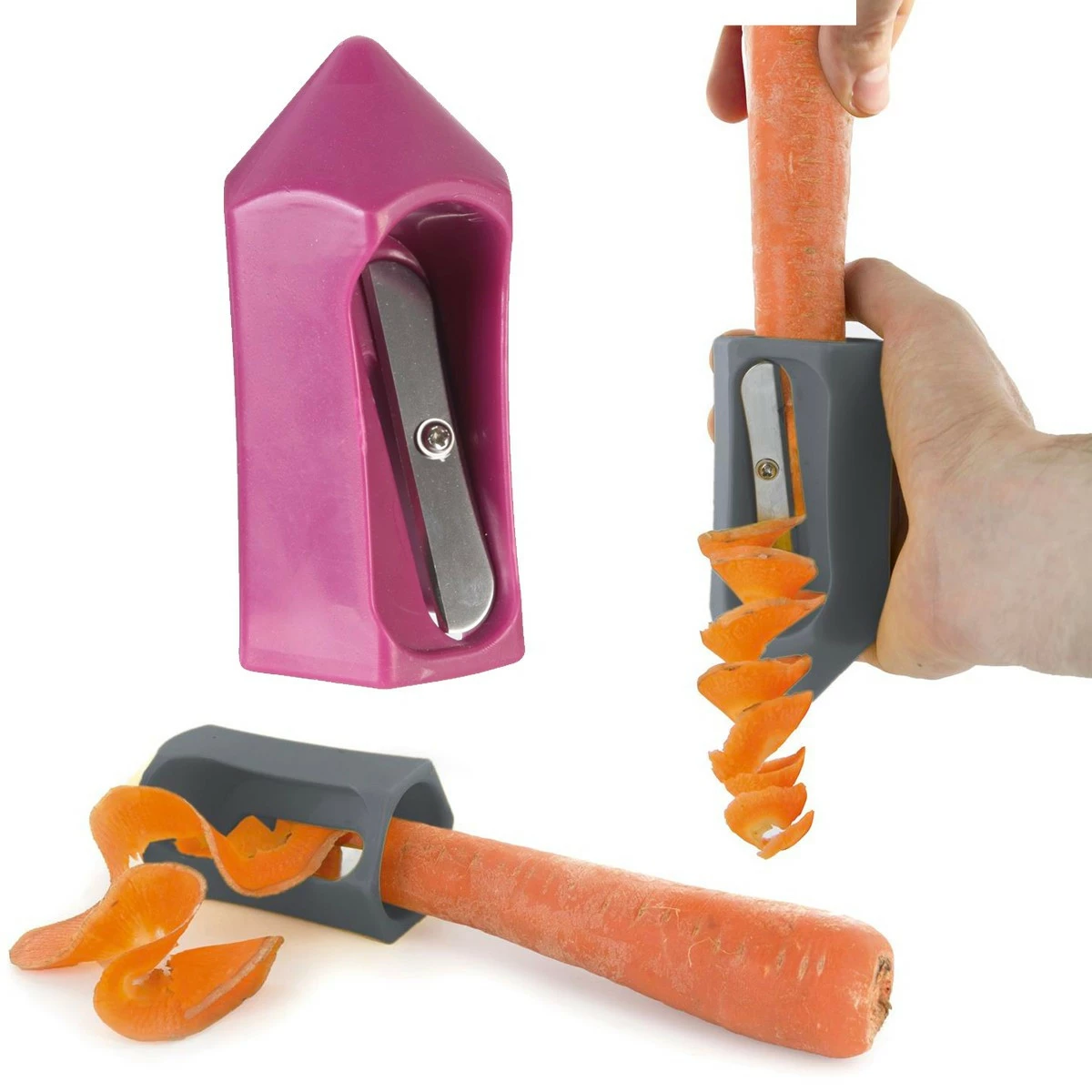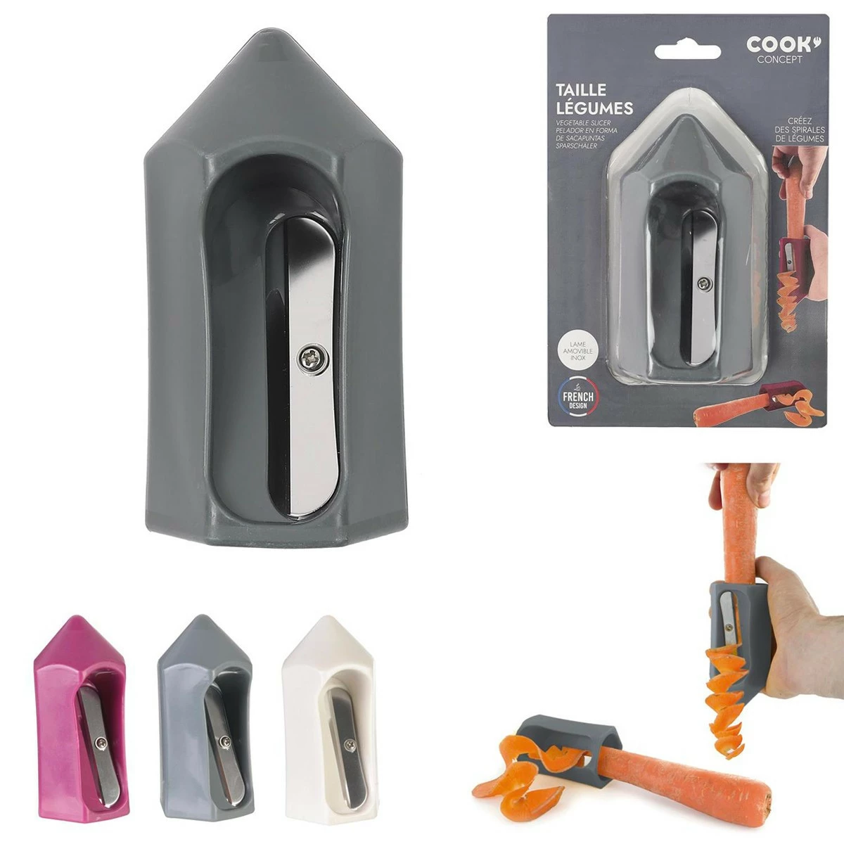 Directement inspiré d’un véritable taille-crayons, il épouse parfaitement l’extrémité des légumes à tailler. Pratique, il se glisse facilement dans un tiroir de cuisine et sa lame est amovible pour un entretien facile et rapide.
