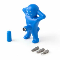 Le Tournevis homme heureux est … un bien bel « outil » super Ă©quipĂ© : il possède sur lui trois embouts (oui, des embouts…) de tournevis : un cruciforme et deux embouts plats, un petit et un large. Le manche du tournevis, c’est le corps du petit bonhomme et l’embout se place sur son extrĂ©mitĂ© la plus longue (Pas besoin de vous faire un dessin pour le voir !). Nous aurions pu appeler le tournevis homme heureux, familièrement le « tournebite »… mais nous n’avons pas osĂ©… (mais on vous le dit quand mĂŞme !).